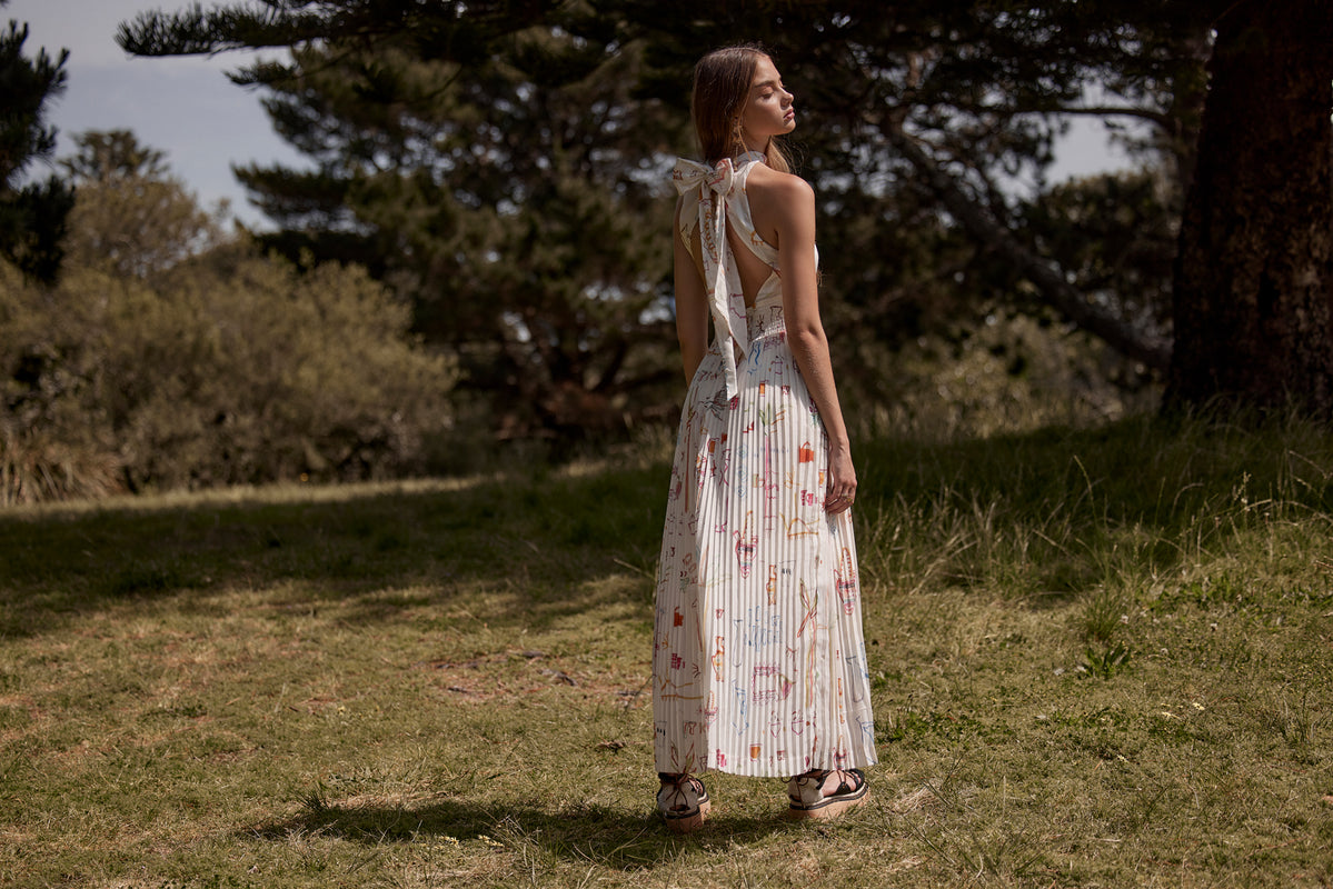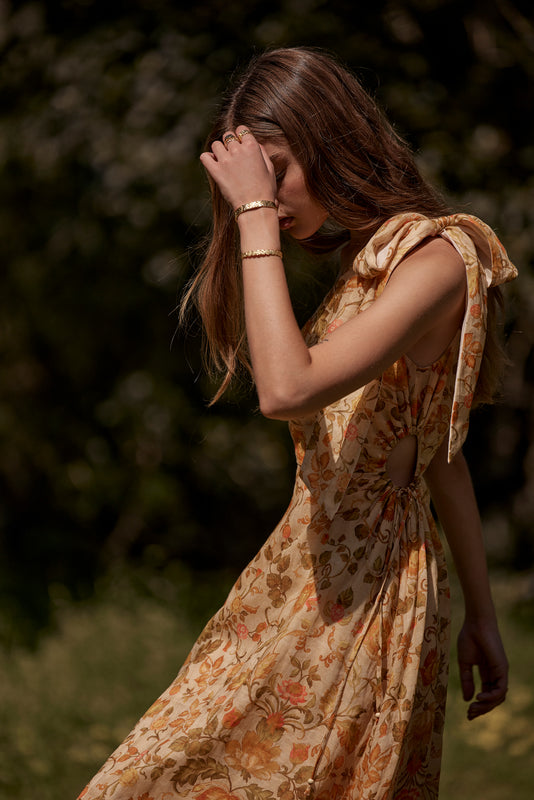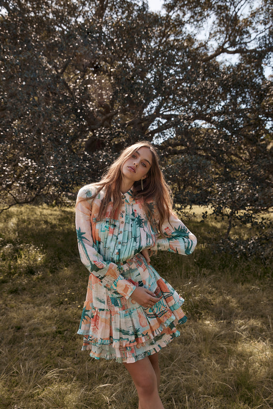 Sahara, Kate Ford’s Resort 23 collection, influenced by layers of experience and culture by the Moroccan people. 5am morning prayer ringing out across the city, romance through the warm, cobbled streets, on your way to the markets, sifting through the mix of herbs, spices and tannery that fill the air. Walking towards the warm and welcoming artisan weaver who involved Kate in teaching first hand how they've mastered the craft from years of passed down traditions. Then onto the famous Jardin De Majorelle, where you find the glowing sunlit yellow walls, from above it is looking like sapphire amongst the Red City. As you cross the threshold, the pink creeper-covered walls contain a world of exotic plants and trees, esoteric art and memories, these dreams becoming an inspiration.